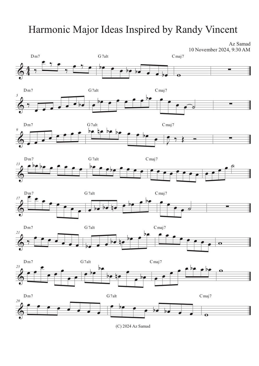 Harmonic Major Ideas Inspired by Randy Vincent (Original individual PDFs, FREE VERSION)