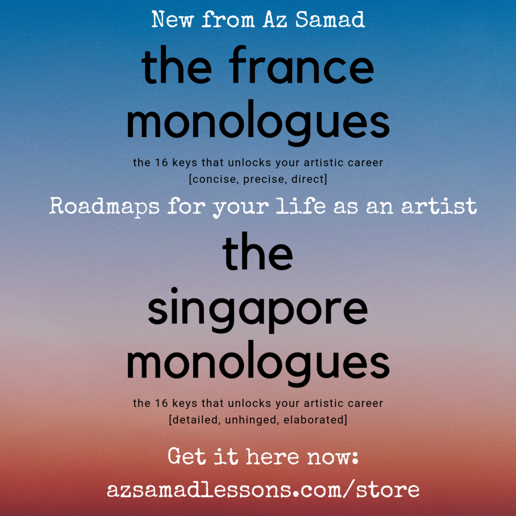 "The France Monologue is really amazing in a way, although this piece by Az is not about music theory or guitar technic but it has amazing content in it and it is designed not only for musician but for all kind of artist somemore! The France Monologue definitely will give you some thought about your art career and also show you new perspective toward your art career. I can see Az really put some real thought in The France Monologue and also The Singapore Monologue which is added later for deeper explanation for each topic. Lastly Az is really generous , not only did he add The Singapore Monologue but also he put some extra stuff in the bundle!" - Lim Zheng Yang, Guitarist